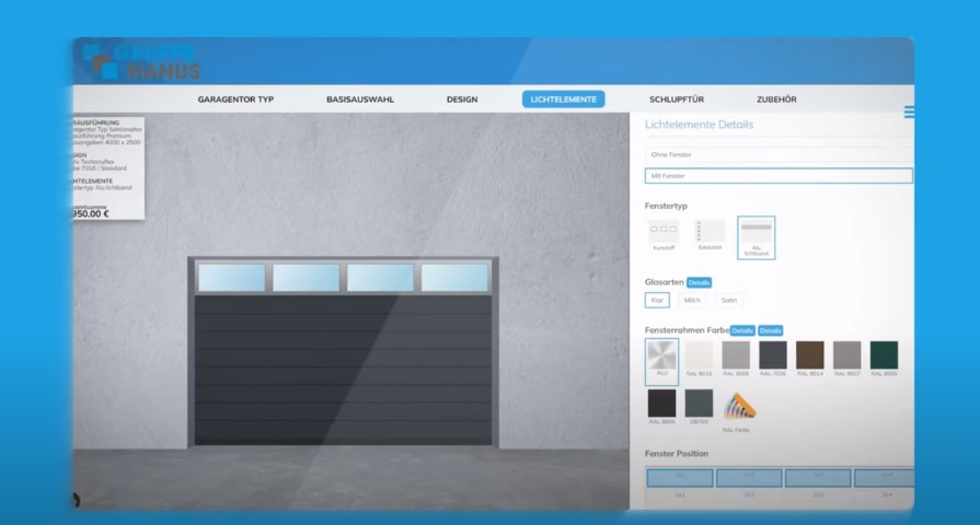 Mit dem Garagentor-Konfigurator können Sie das Garagen-Seitensektionaltor Ihrer Wahl auswählen